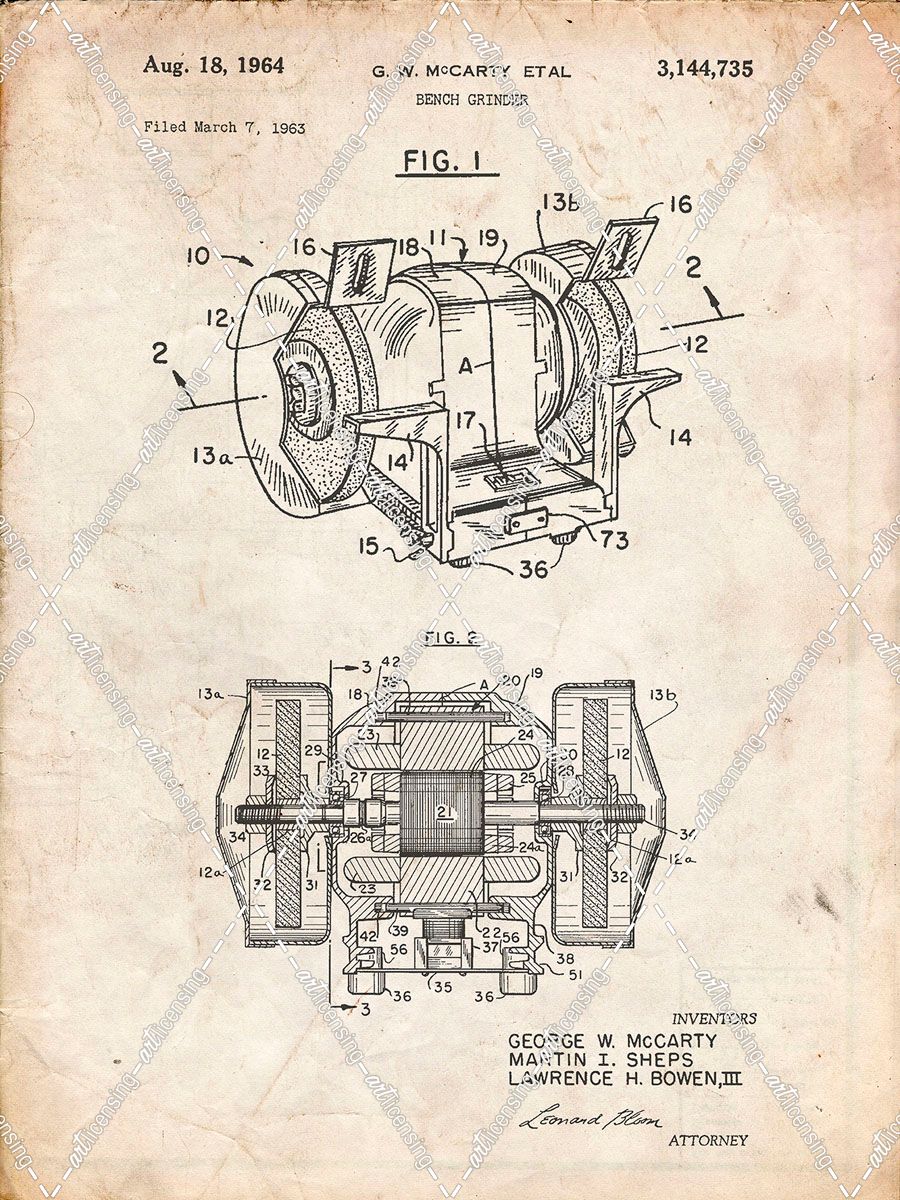 PP733-Vintage Parchment Bench Grinder Patent Poster
