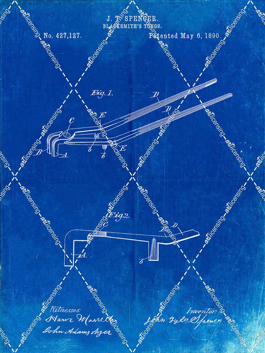PP744-Faded Blueprint Blacksmith Tongs Patent Poster