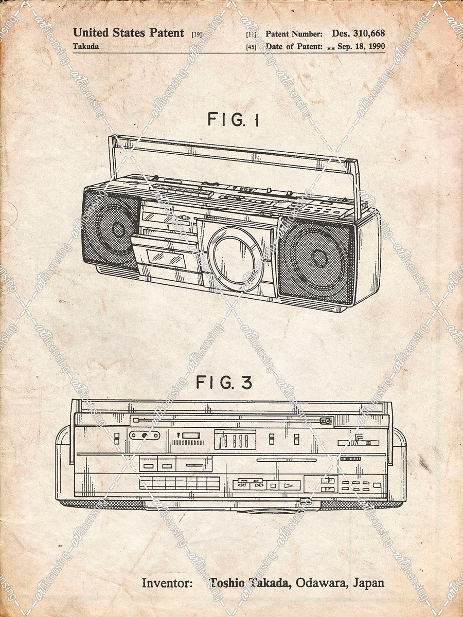 PP752-Vintage Parchment Boom Box Patent Poster