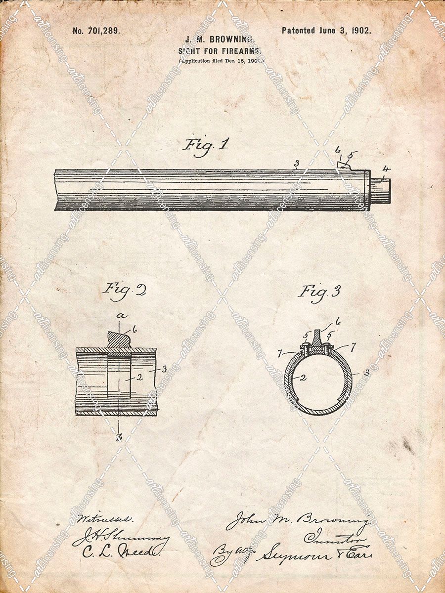 PP756-Vintage Parchment Browning Sight for Firearms Patent Poster