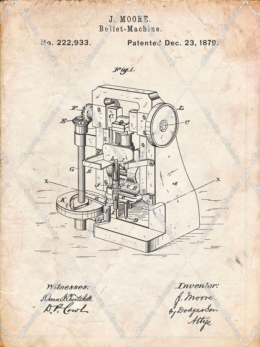 PP757-Vintage Parchment Bullet Machine Patent Poster