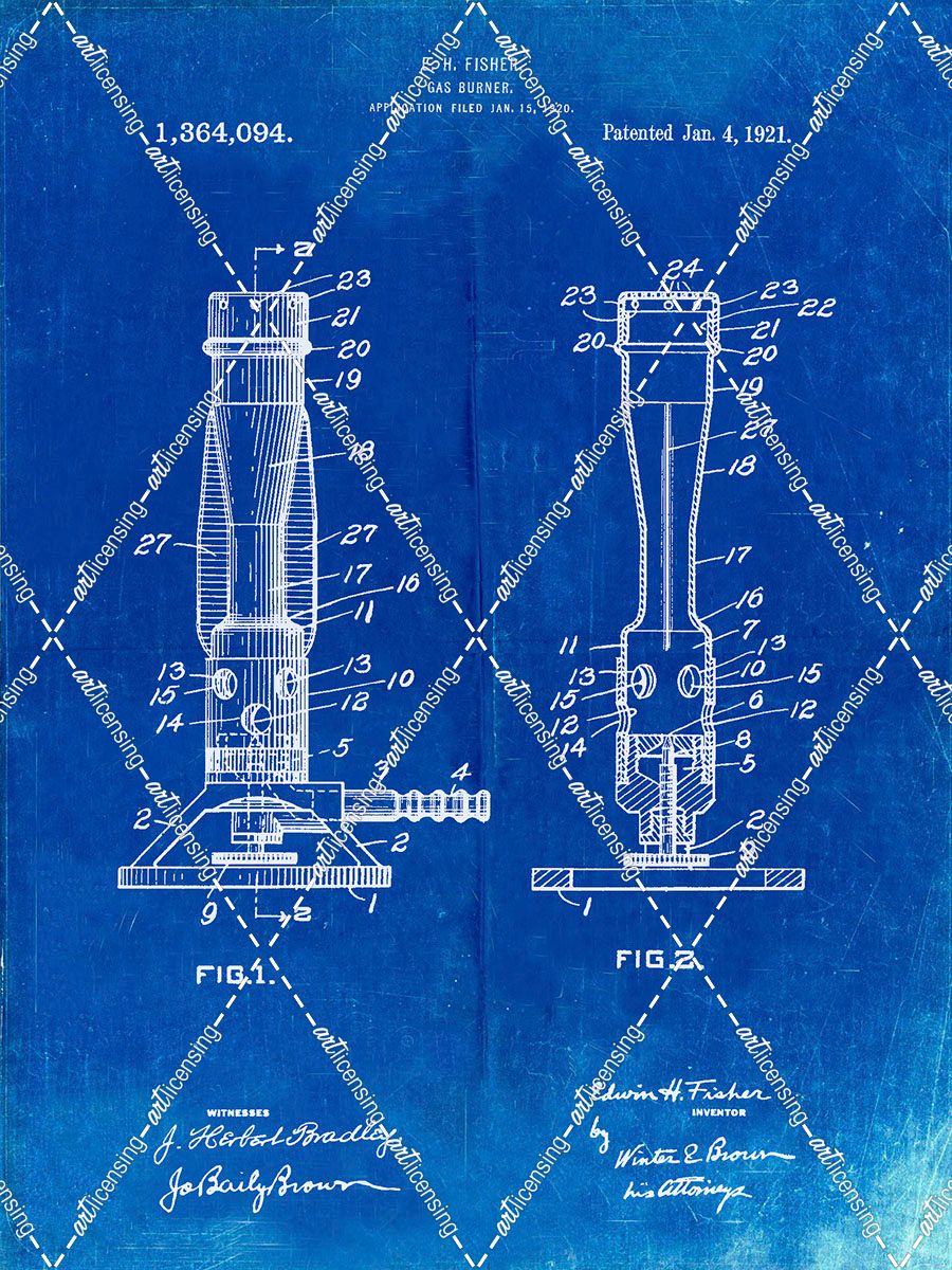 PP758-Faded Blueprint Bunsen Burner 1921 Patent Poster