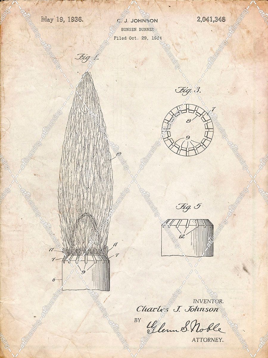 PP759-Vintage Parchment Bunsen Burner Gas Distribution Patent Poster