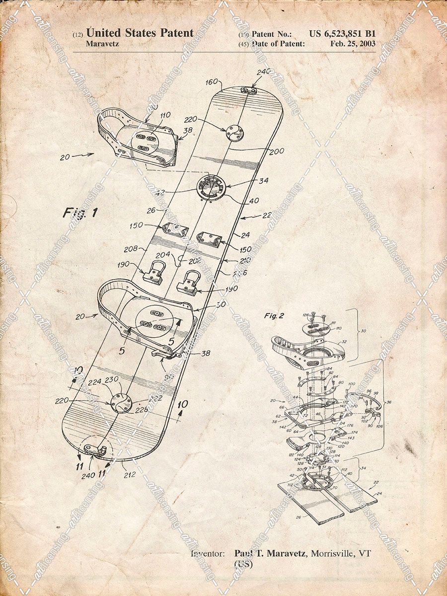 PP760-Vintage Parchment Burton Touring Snowboard Patent Poster