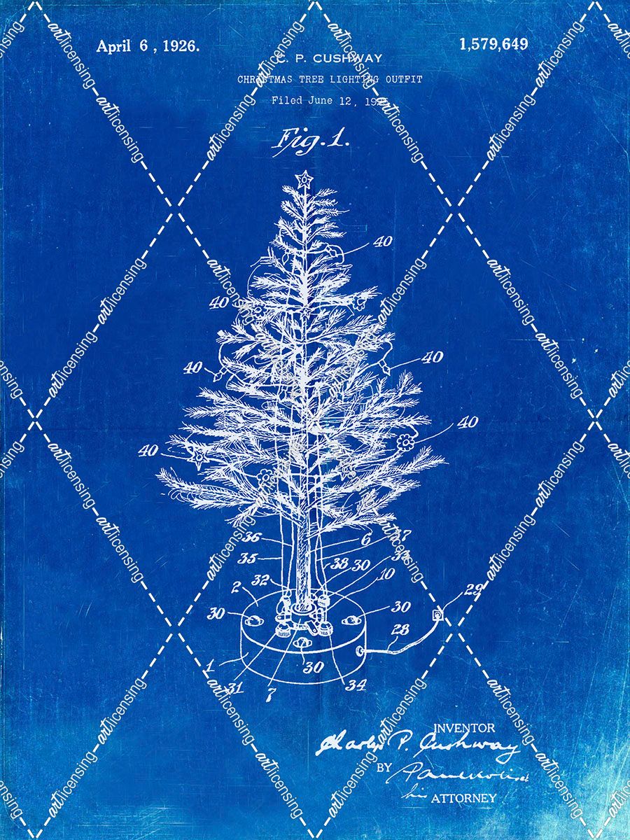 PP766-Faded Blueprint Christmas Tree Poster