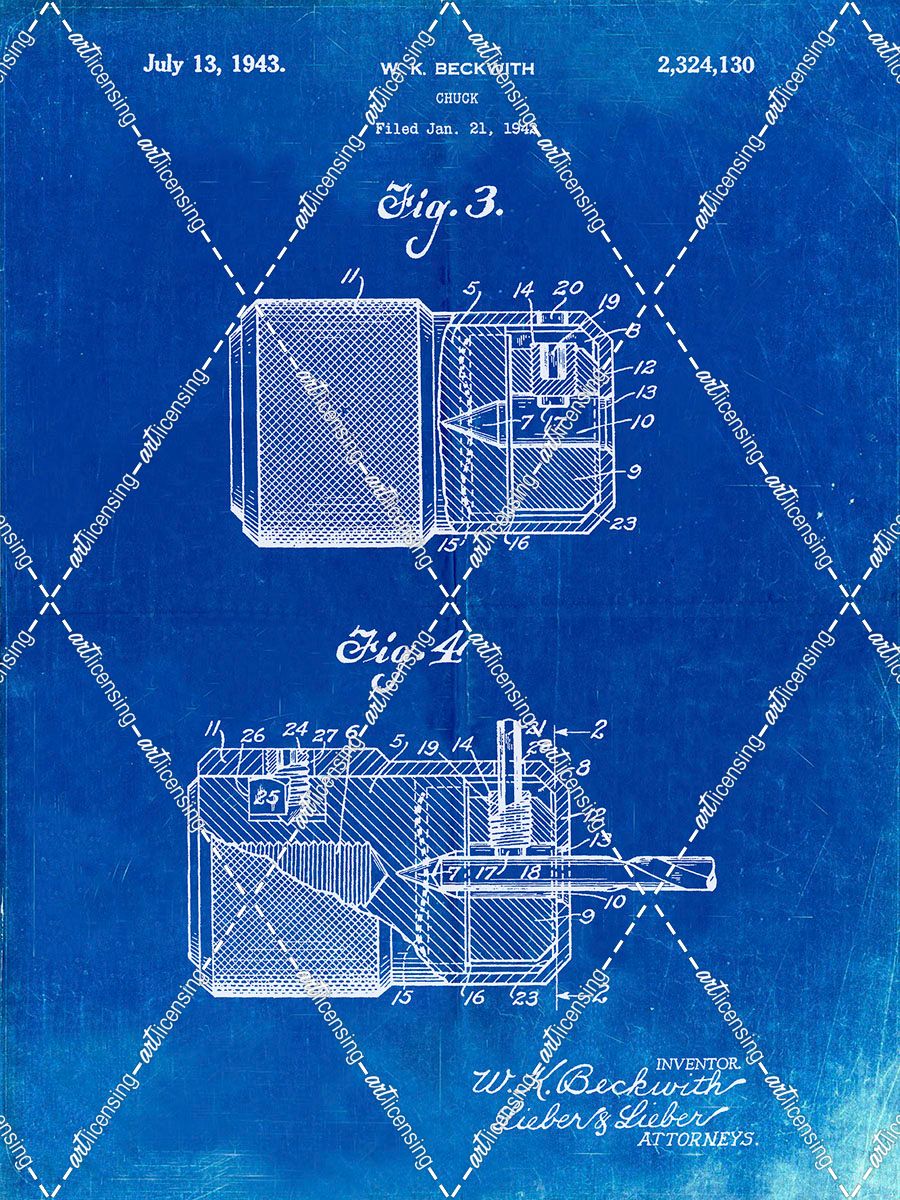 PP787-Faded Blueprint Drill Chuck 1943 Patent Poster