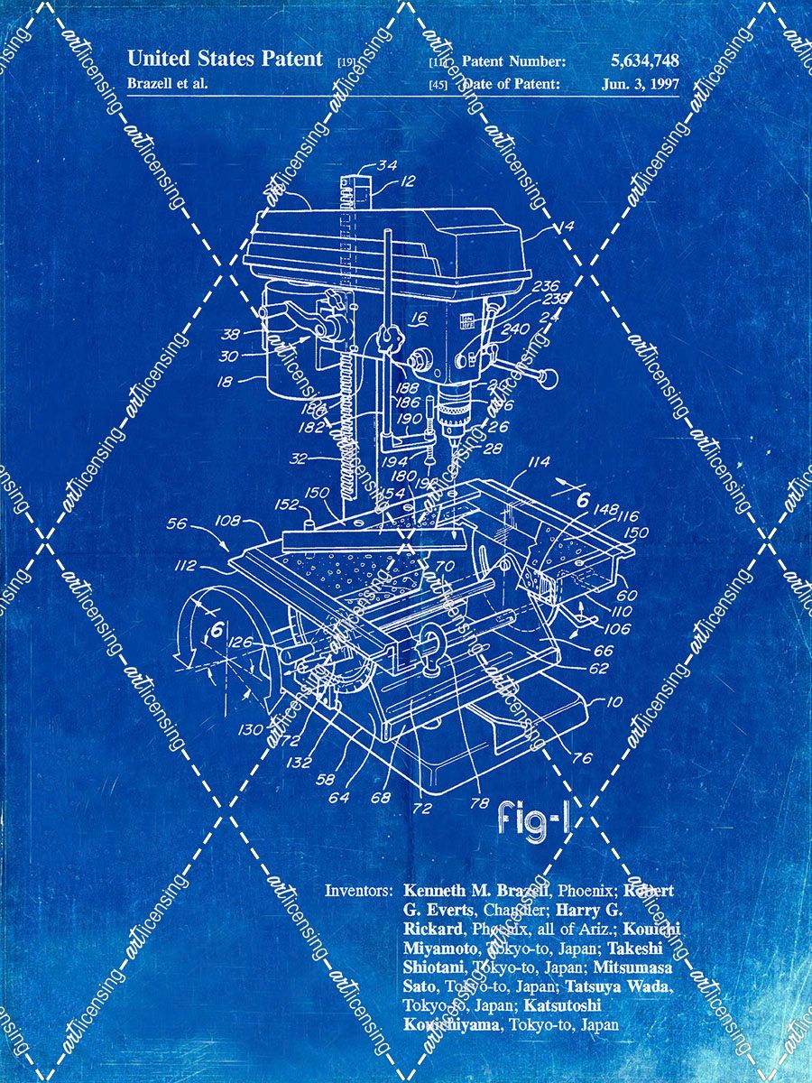 PP788-Faded Blueprint Drill Press Patent Poster