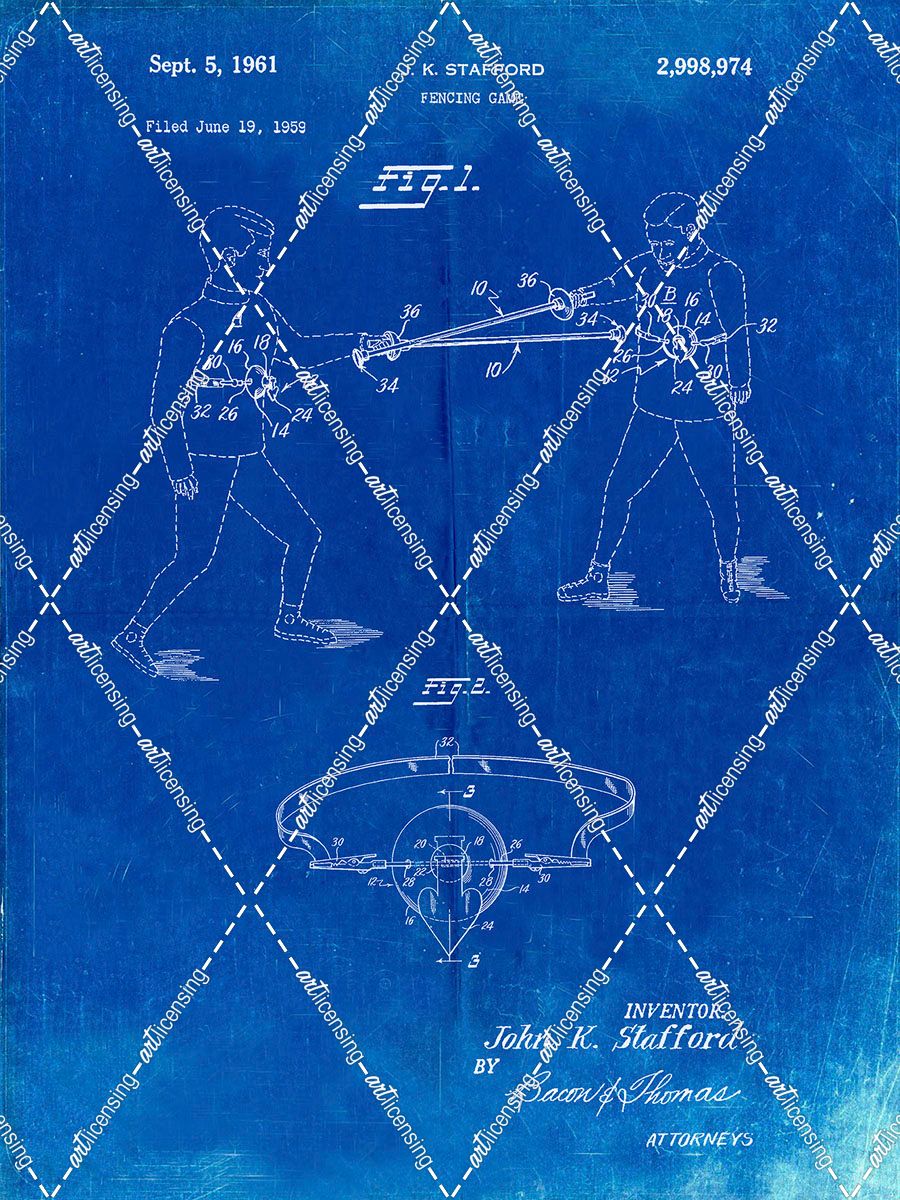 PP804-Faded Blueprint Fencing Game Patent Poster