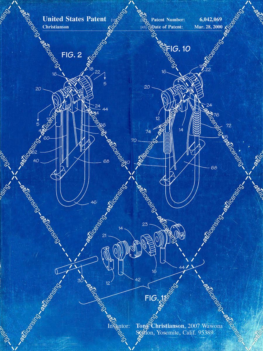 PP81-Faded Blueprint Rock Climbing Camalot Patent Poster