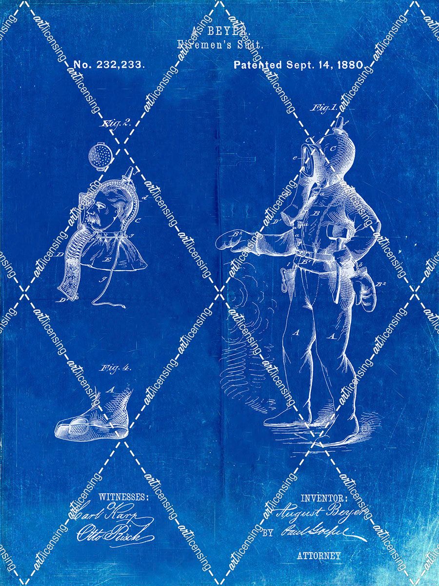 PP811-Faded Blueprint Firefighter Suit 1880 Patent Poster