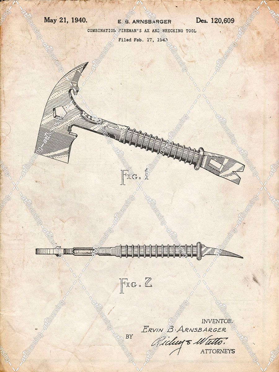 PP812-Vintage Parchment Fireman’s Axe 1940 Patent Poster