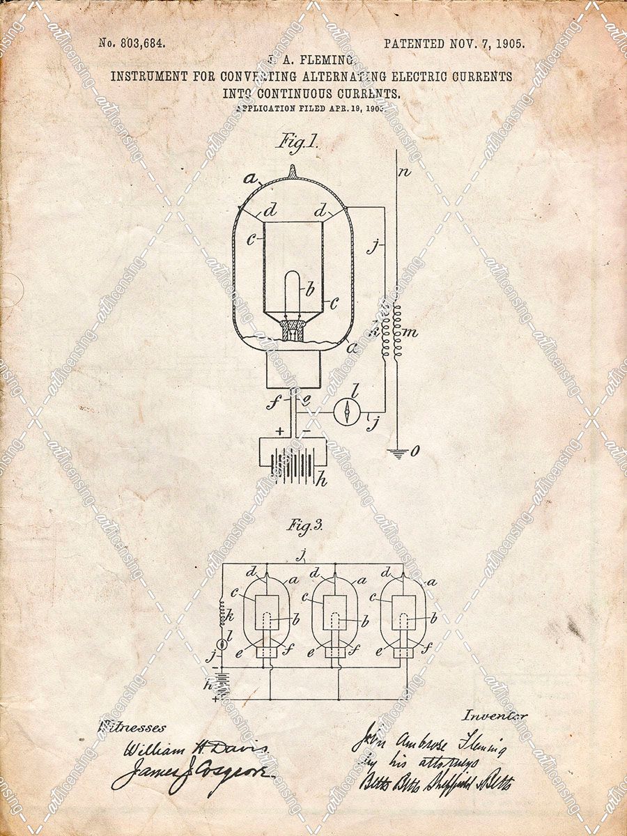 PP817-Vintage Parchment Fleming Valve Patent Poster