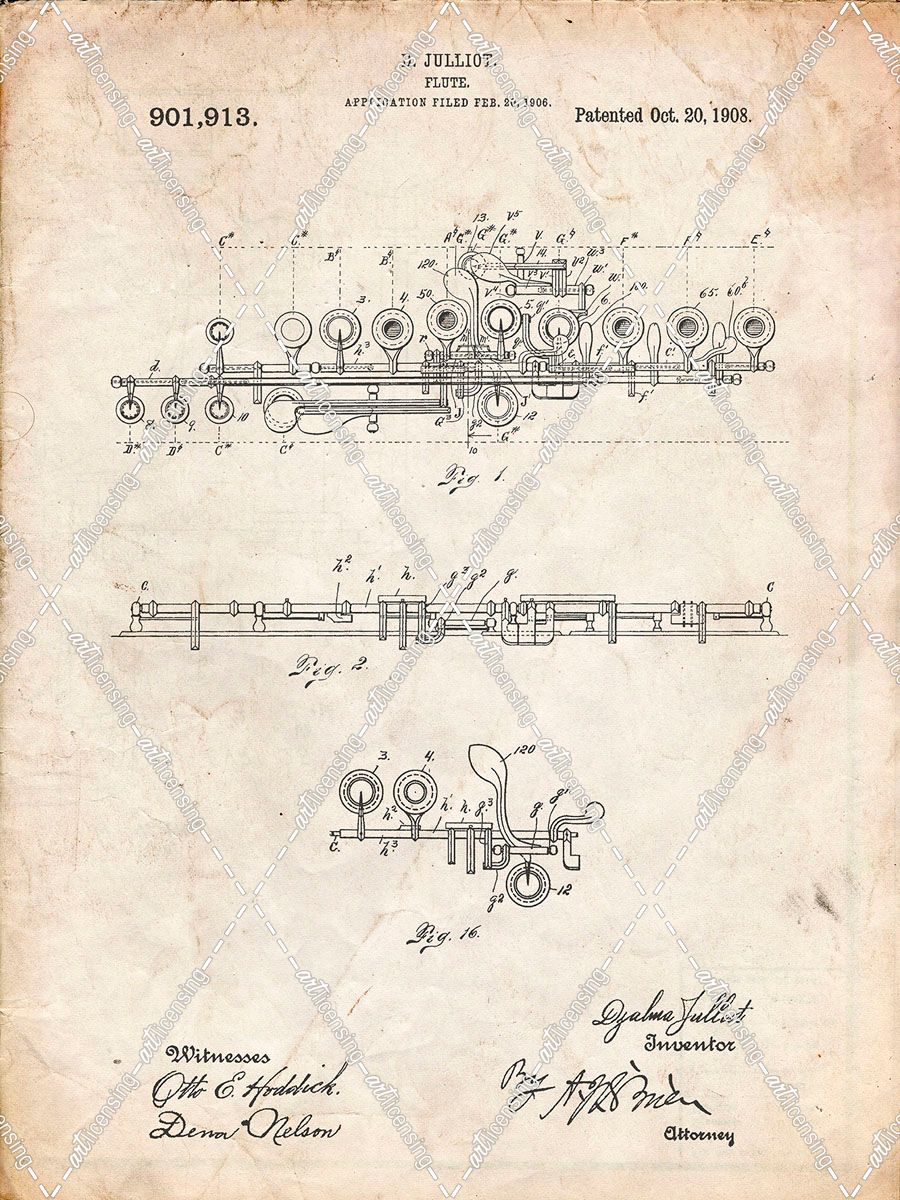 PP820-Vintage Parchment Flute 1908 Patent Poster