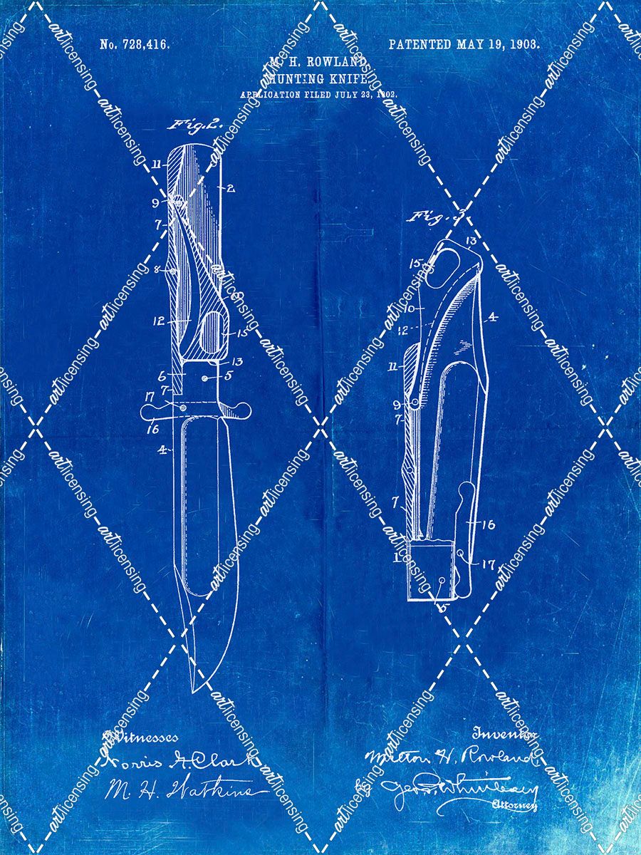 PP822-Faded Blueprint Folding Hunting Knife 1902 Patent Poster