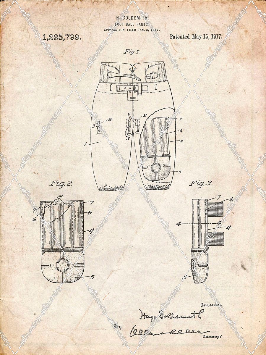 PP828-Vintage Parchment Football Pants Patent Print