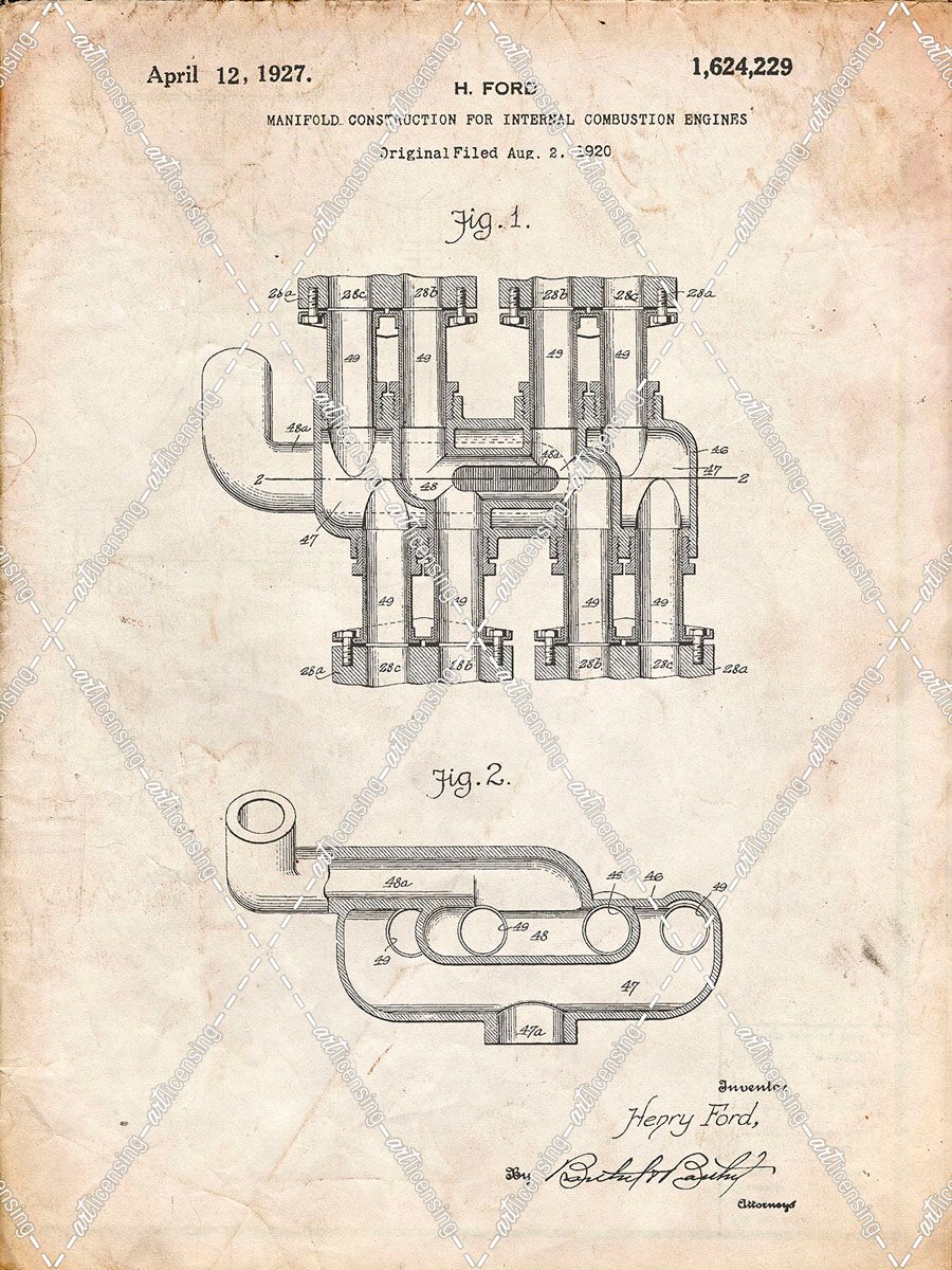 PP832-Vintage Parchment Ford Car Manifold 1920 Patent Poster