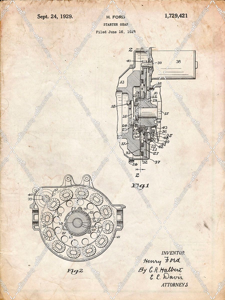 PP833-Vintage Parchment Ford Car Starter Gear 1928 Patent Poster