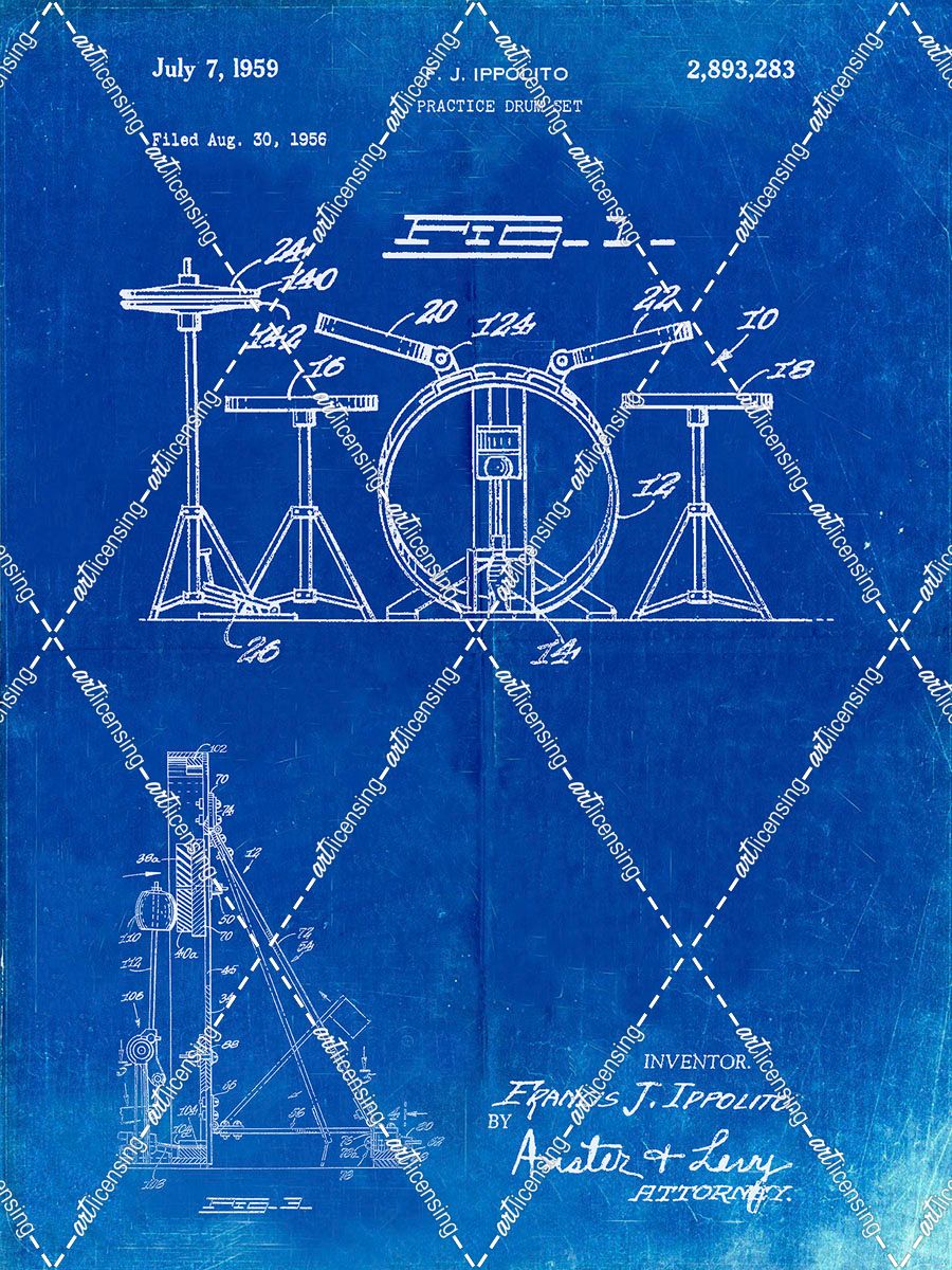 PP852-Faded Blueprint Frank Ippolito Practice Drum Set Patent Poster
