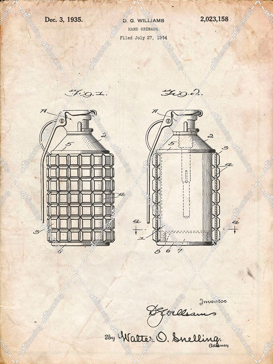 PP867-Vintage Parchment Hand Grenade Patent Poster