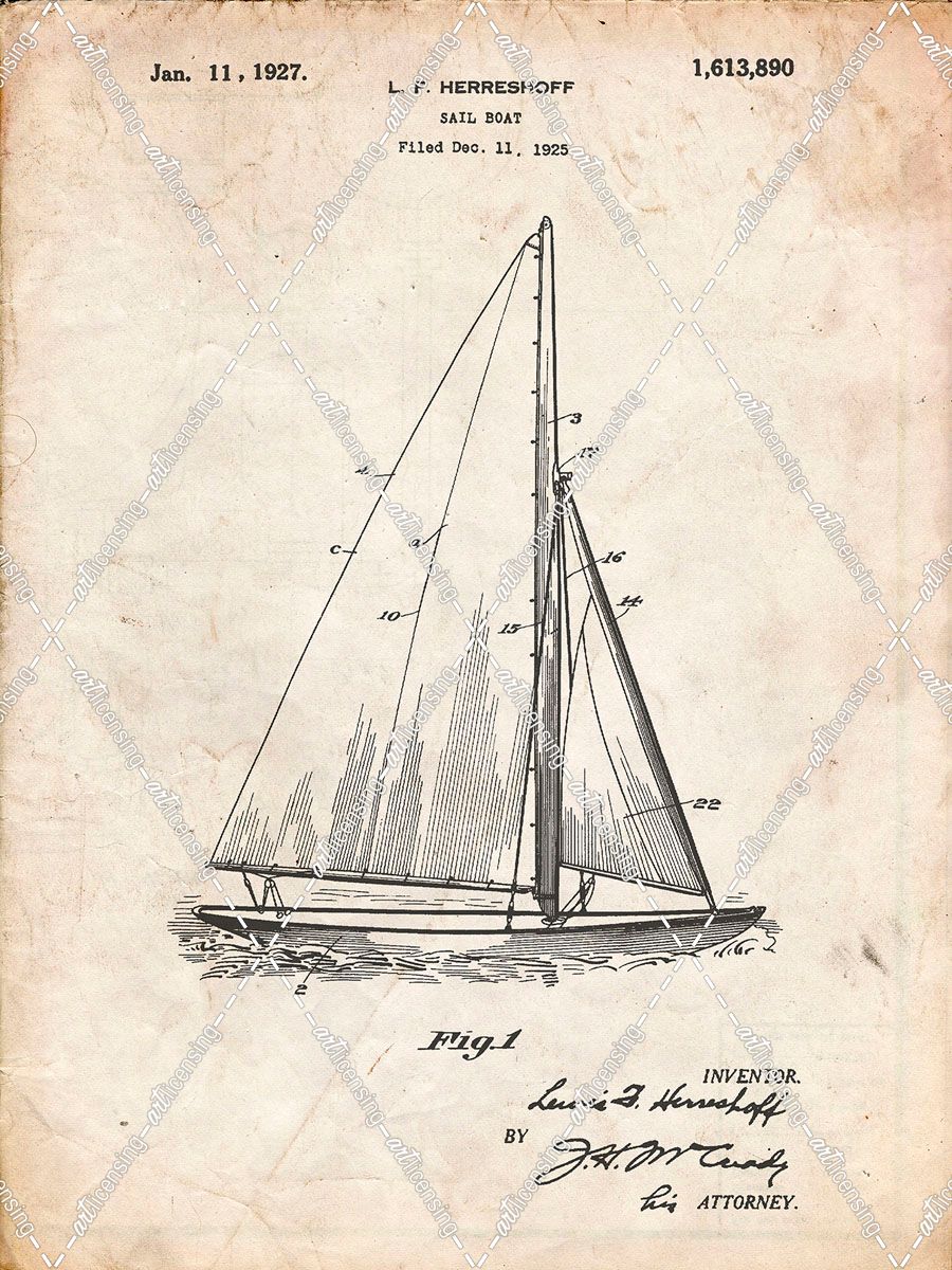PP878-Vintage Parchment Herreshoff R 40′ Gamecock Racing Sailboat Patent Poster