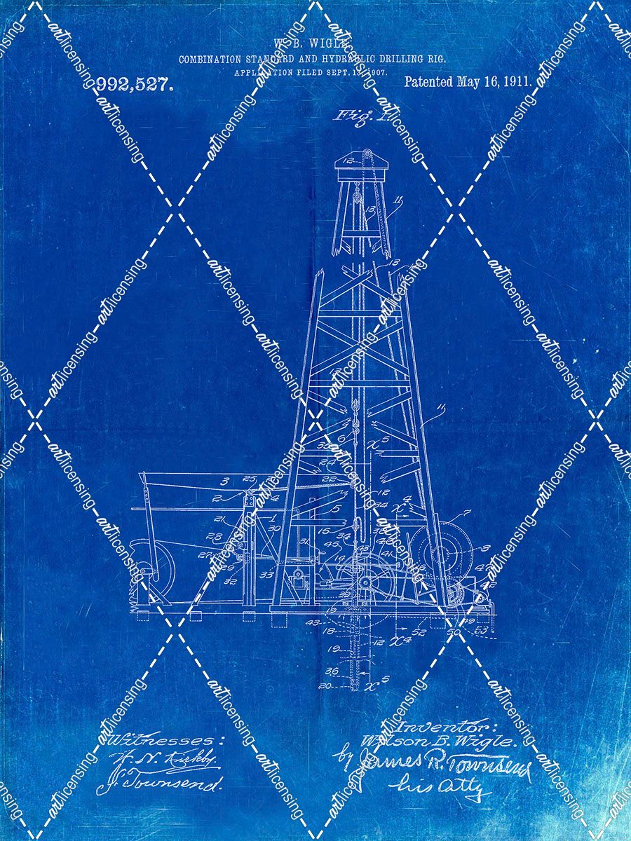 PP886-Faded Blueprint Hydraulic Drilling Rig Patent Poster