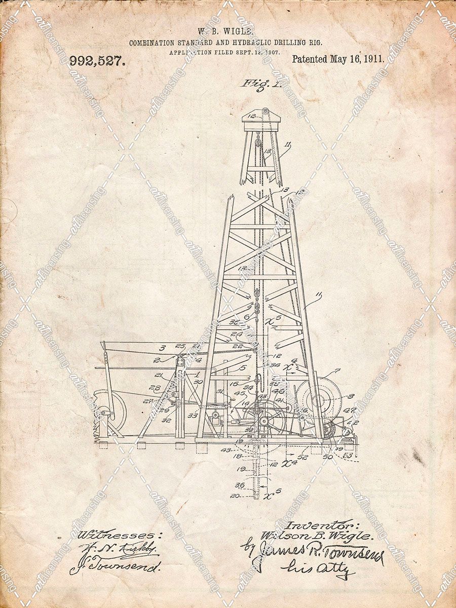 PP886-Vintage Parchment Hydraulic Drilling Rig Patent Poster