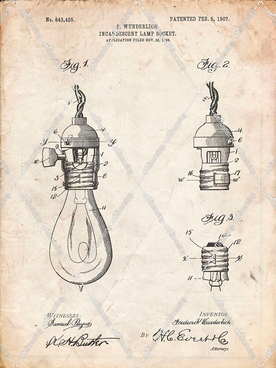 PP890-Vintage Parchment Incandescent Lamp Socket Patent Poster
