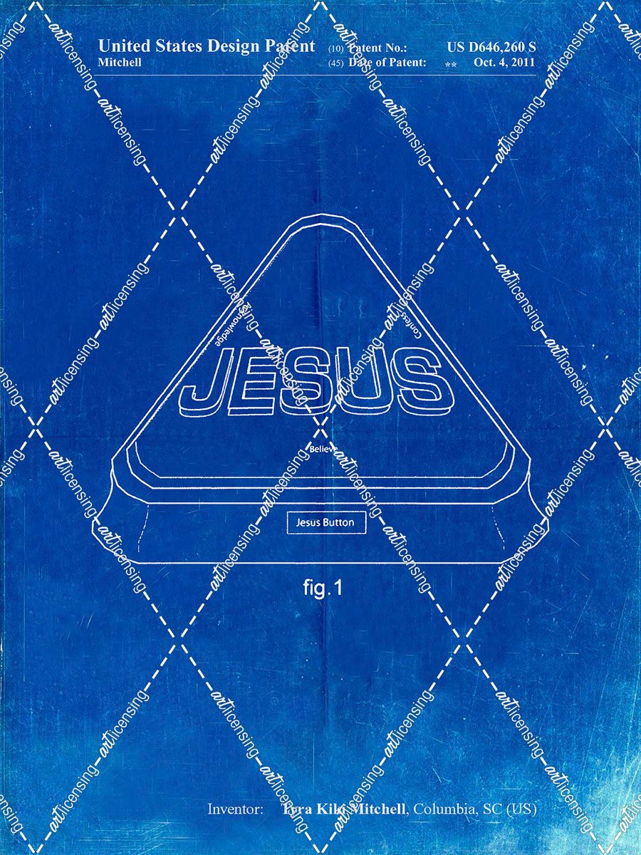 PP900-Faded Blueprint Jesus Button Poster