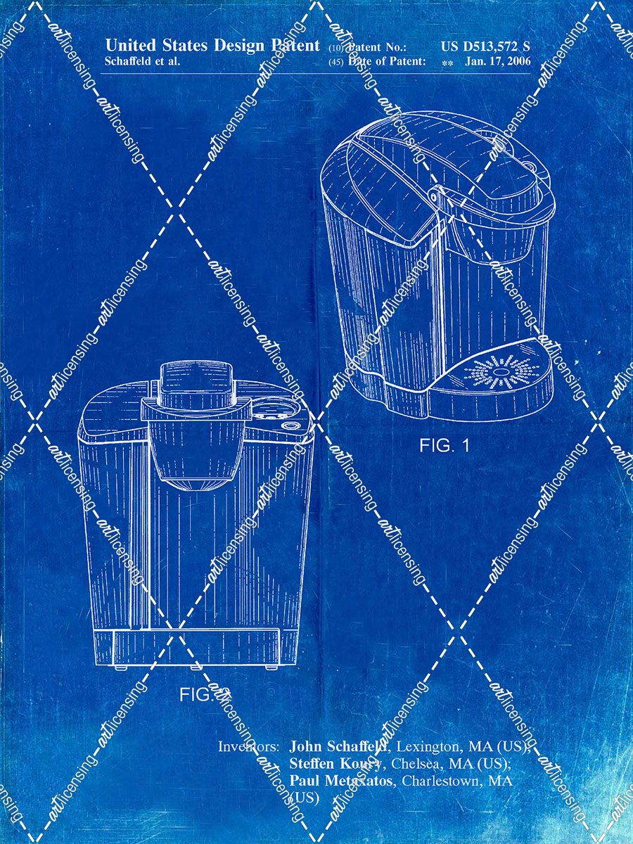 PP905-Faded Blueprint Keurig Coffee Brewer Patent Poster