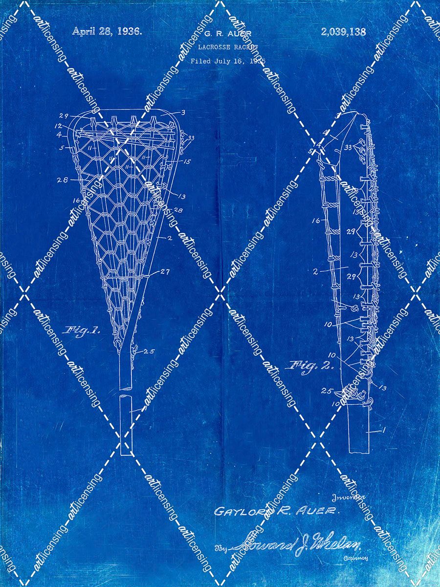 PP914-Faded Blueprint Lacrosse Stick 1935 Paten Poster