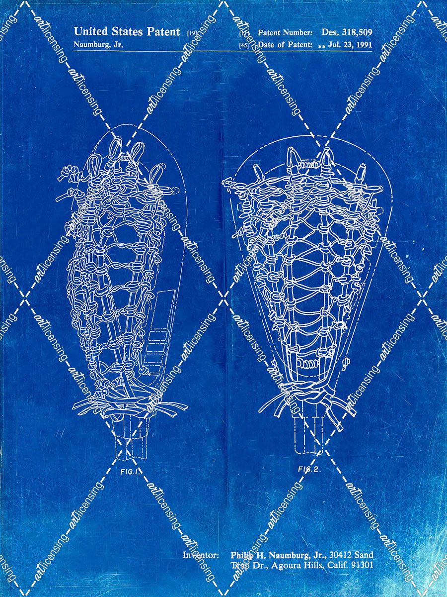 PP916-Faded Blueprint Lacrosse Stick Patent Poster