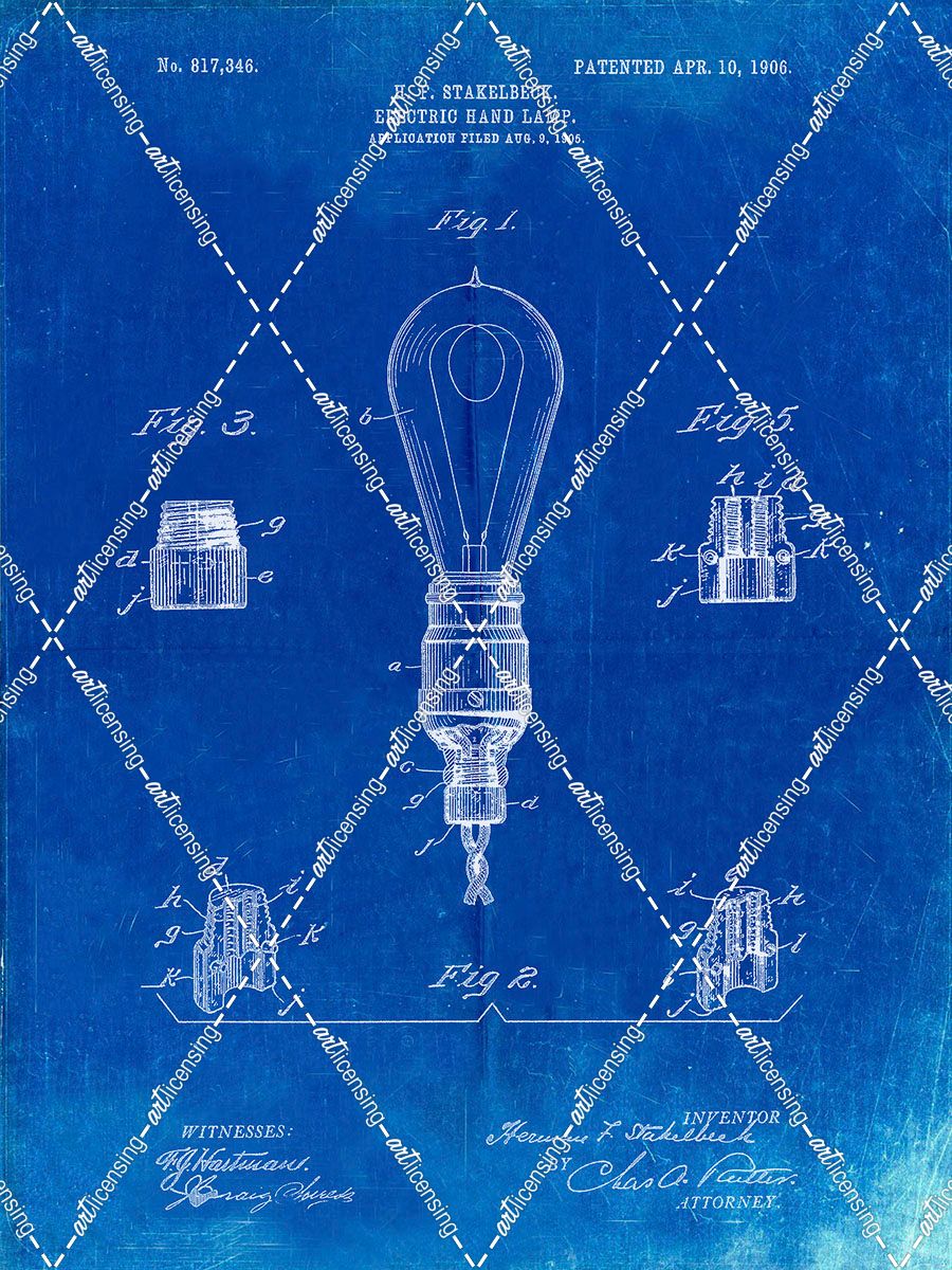 PP917-Faded Blueprint Large Filament Light Bulb Patent Poster