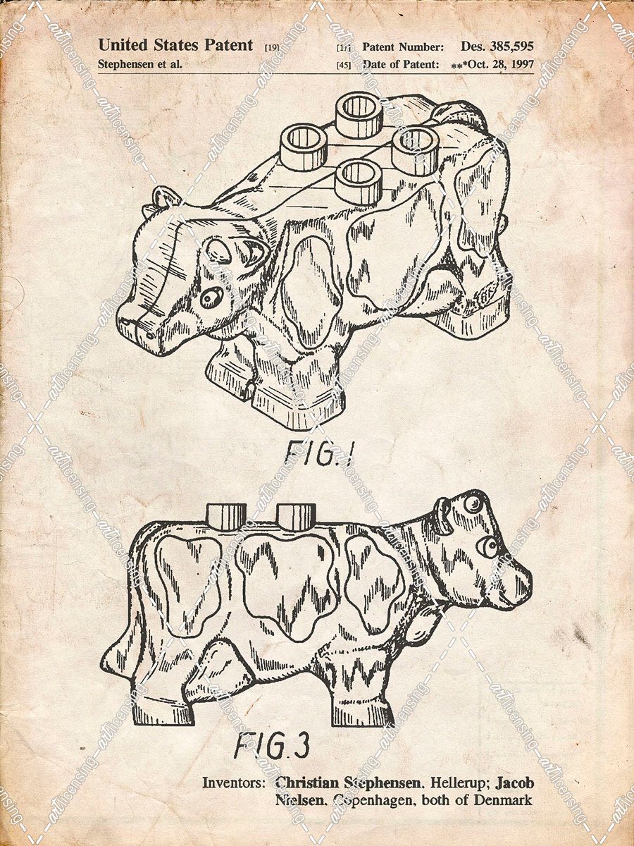 PP921-Vintage Parchment Lego Cow Patent Poster