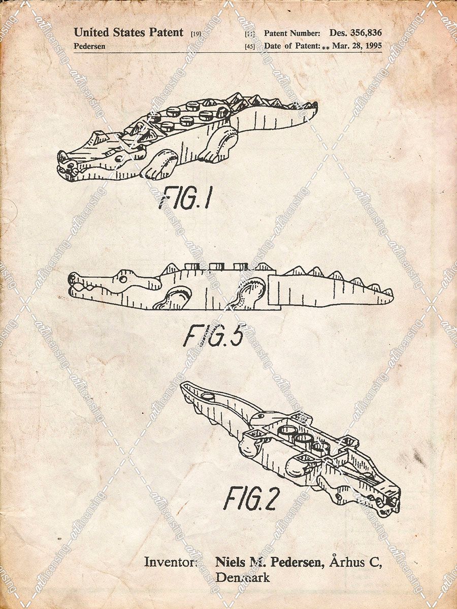 PP923-Vintage Parchment Lego Crocodile Poster