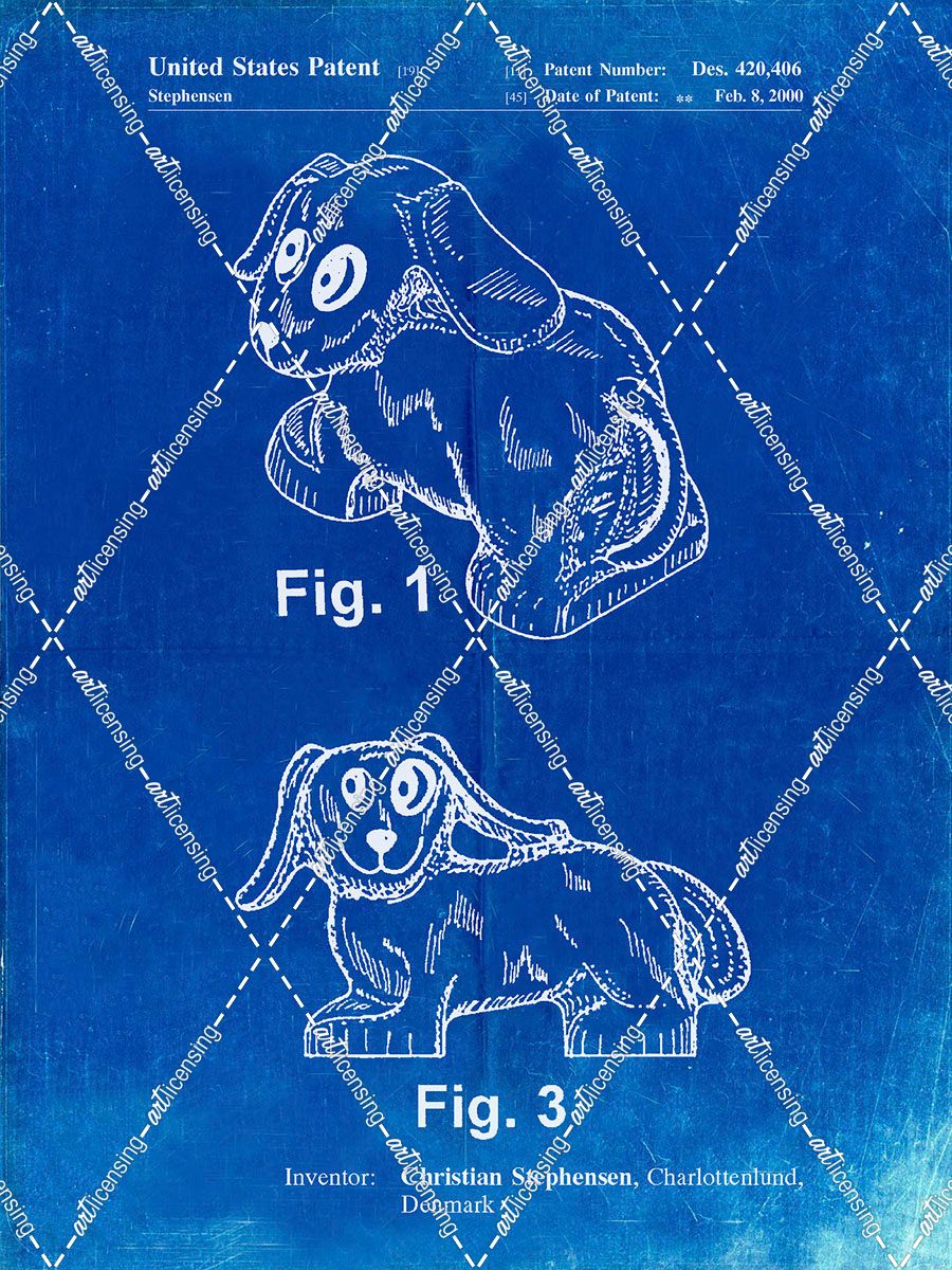 PP924-Faded Blueprint Lego Dog Poster