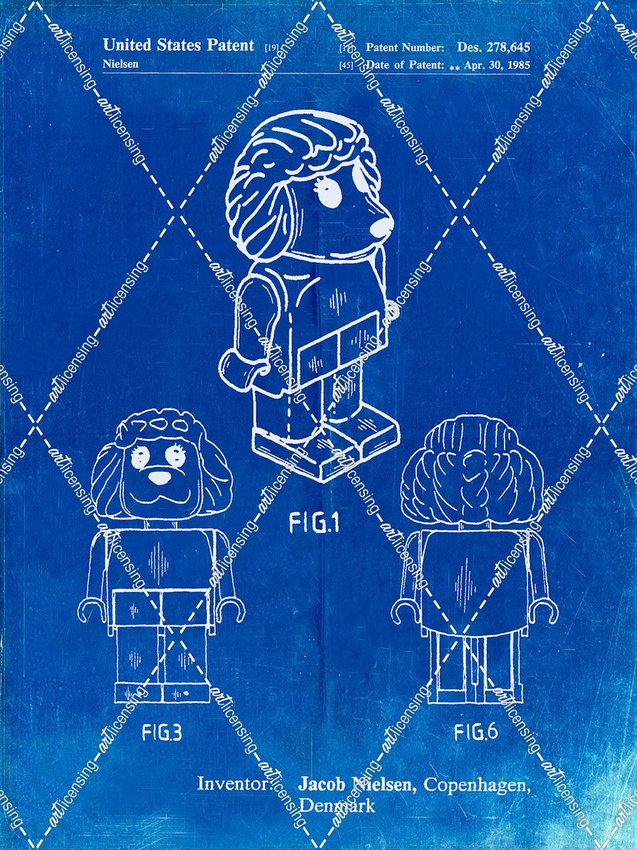 PP934-Faded Blueprint Lego Poodle Patent Poster