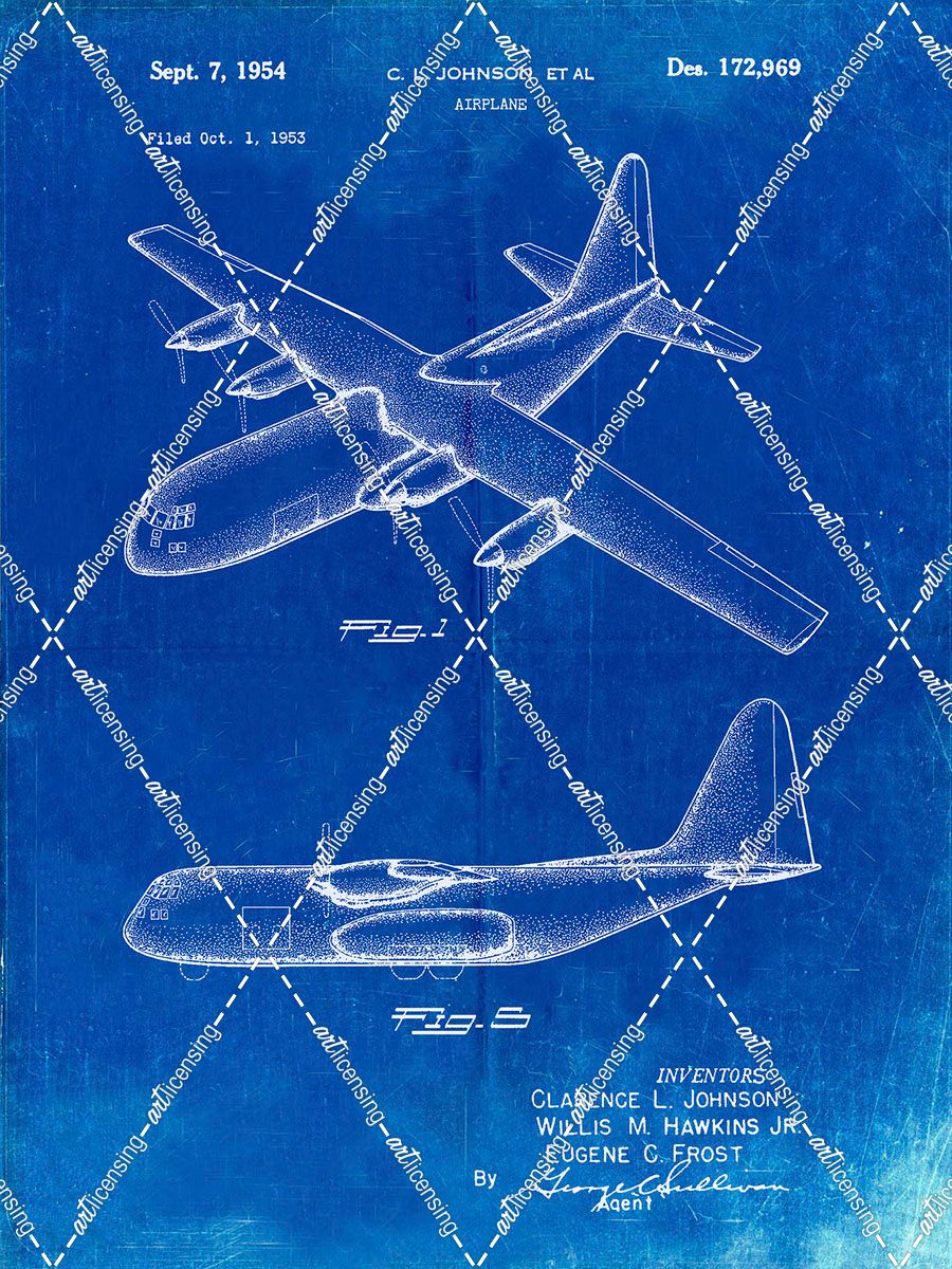 PP943-Faded Blueprint Lockheed C-130 Hercules Airplane Patent Poster