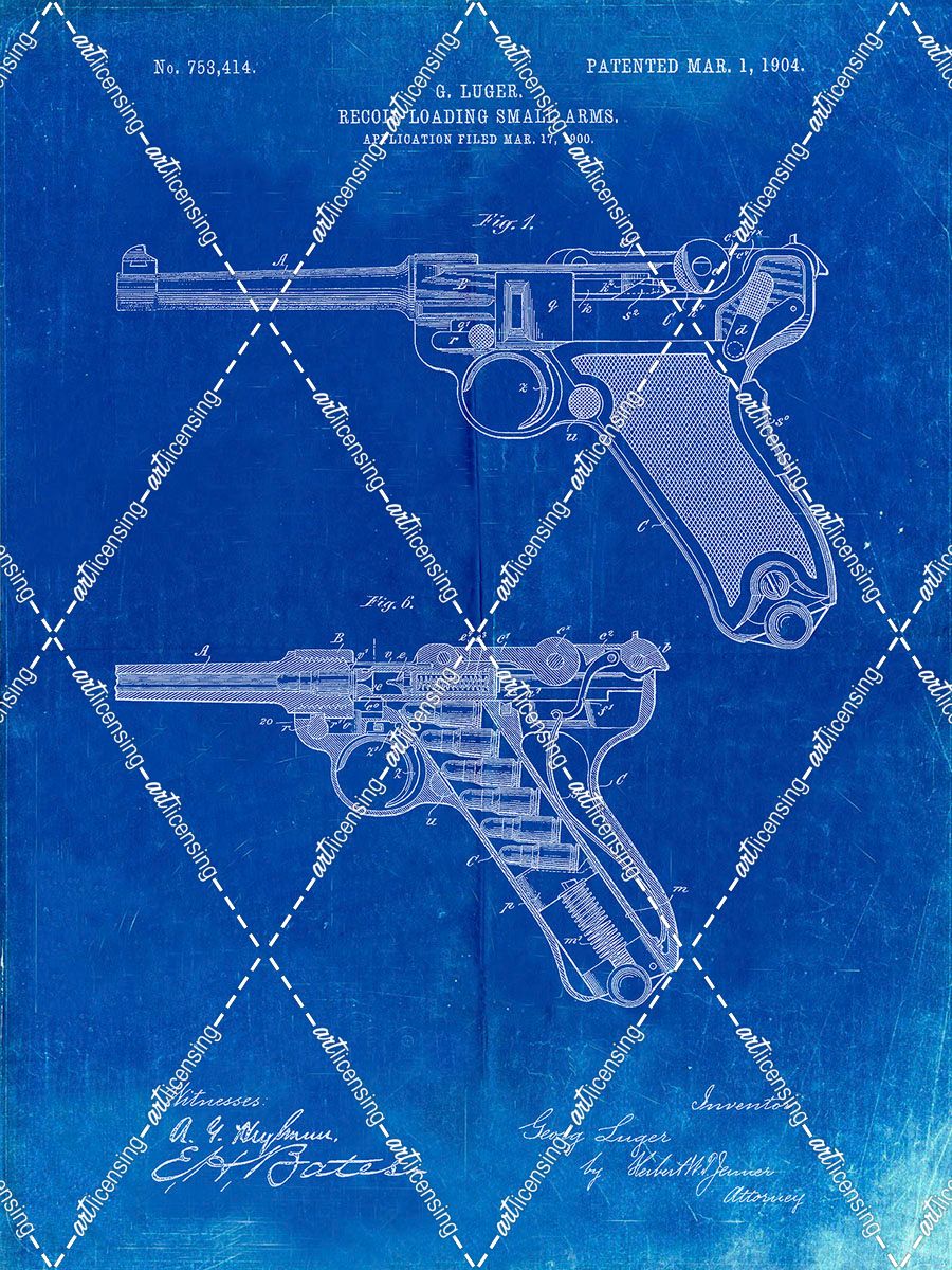 PP947-Faded Blueprint Luger Pistol Patent Poster