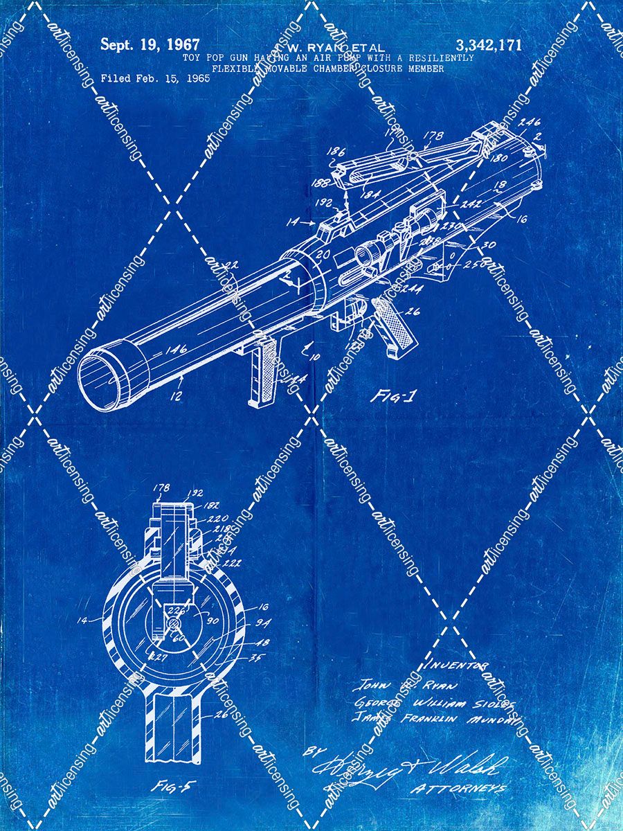 PP952-Faded Blueprint Mattel Toy Pop Gun Patent Poster