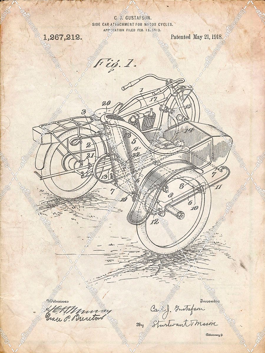 PP963-Vintage Parchment Motorcycle Sidecar 1918 Patent Poster