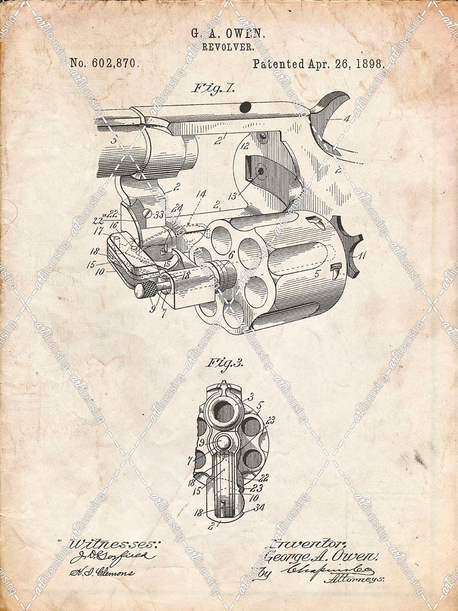 PP980-Vintage Parchment Owen Revolver Patent Art