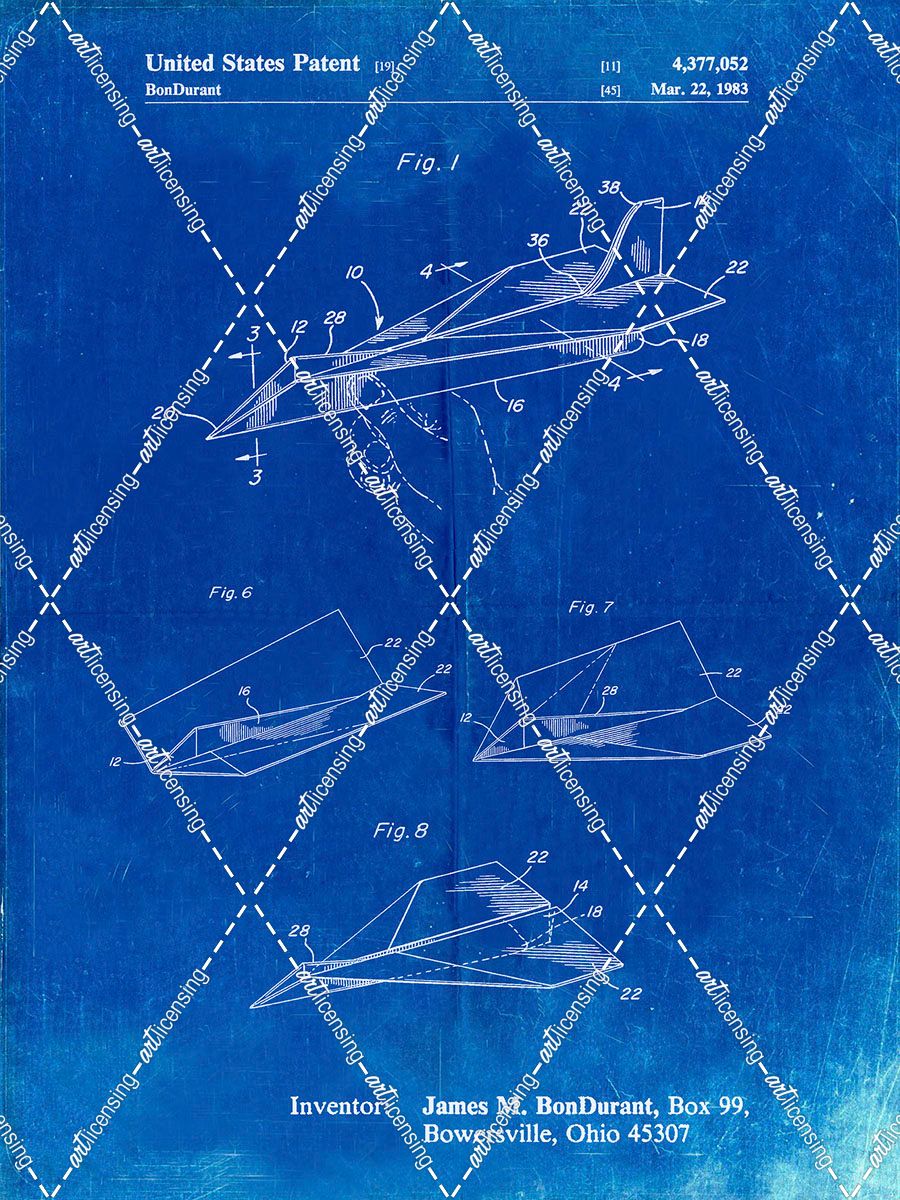 PP983-Faded Blueprint Paper Airplane Patent Poster