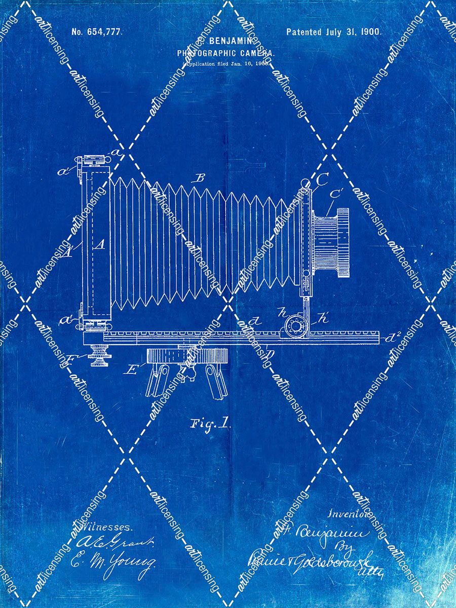 PP985-Faded Blueprint Photographic Camera Patent Poster
