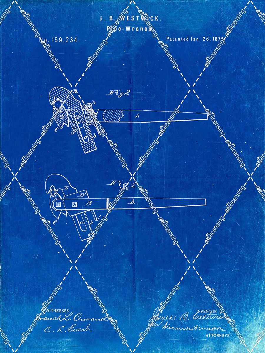 PP987-Faded Blueprint Pipe Wrench Patent Wall Art Poster