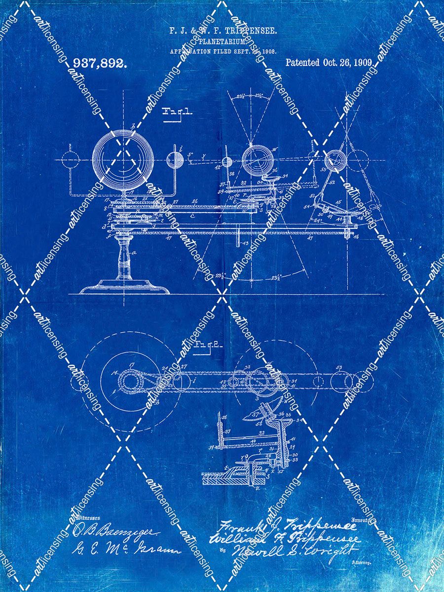 PP988-Faded Blueprint Planetarium 1909 Patent Poster