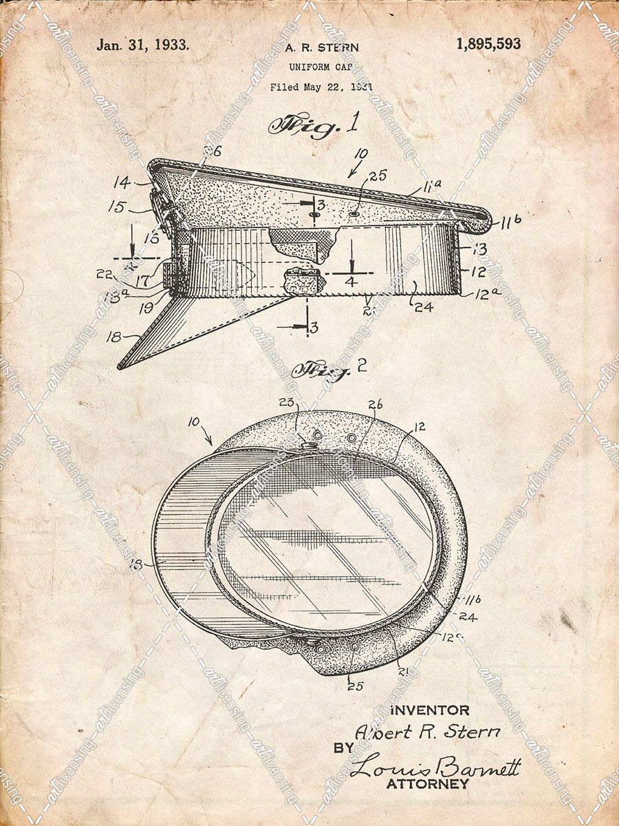 PP993-Vintage Parchment Police Hat 1933 Patent Poster