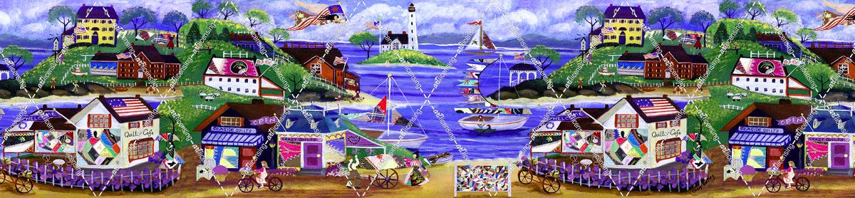 Primitive American Angel and Crazy Quilt Seaside Village