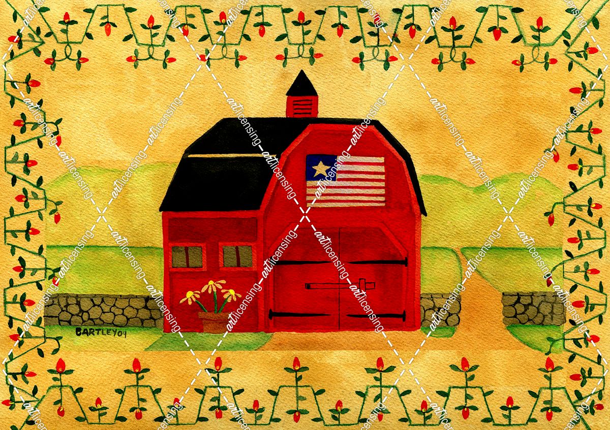 Primtive American Red Folk Art Barn