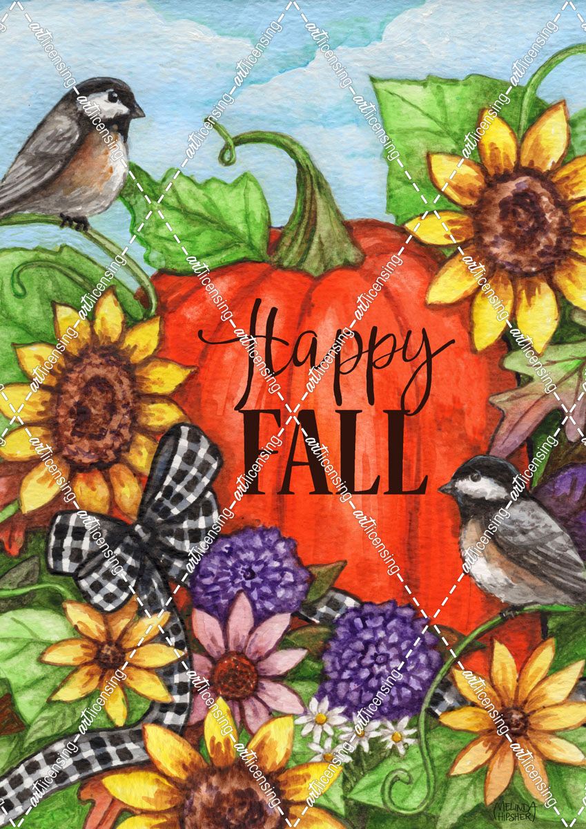 Pumpkin and Birds With Ribbon Happy Fall