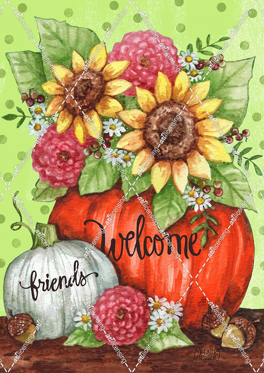Pumpkin With Flowers Welcome Friends